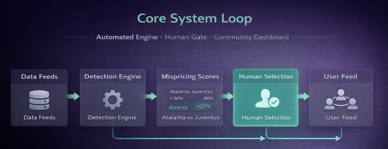 The automation finds edges. Humans decide what matters. Every published call can be traced back to what the market was pricing at the time.